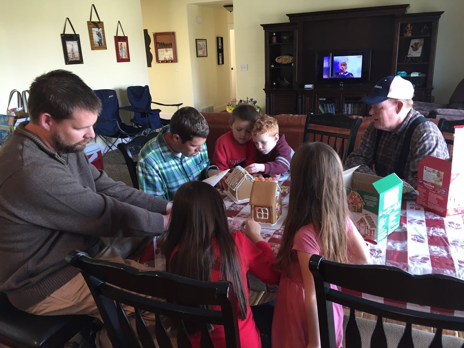 Nov. 26 making gingerbread houses. During dinner we all went around the table and said what we were thankful for. We ladies just cried and cried. We were all so scared.